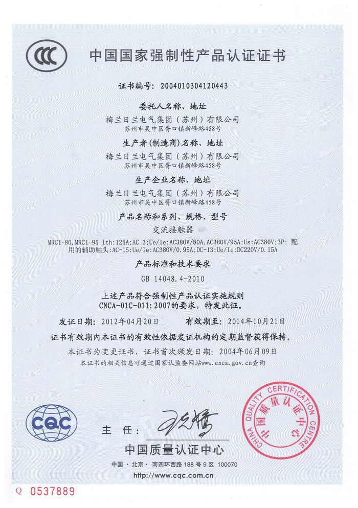 MRC1-80交流資質(zhì)證書