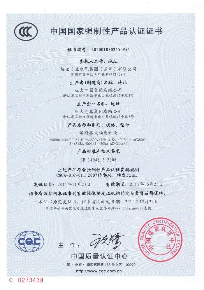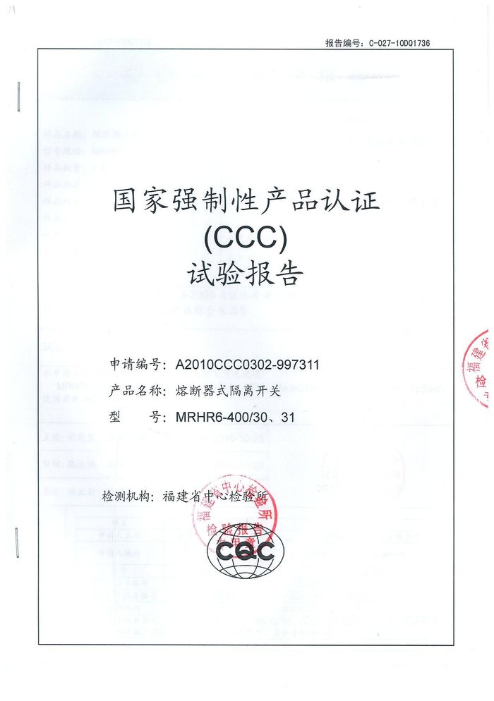 MRHRR-400熔斷隔離開關(guān)資質(zhì)證書