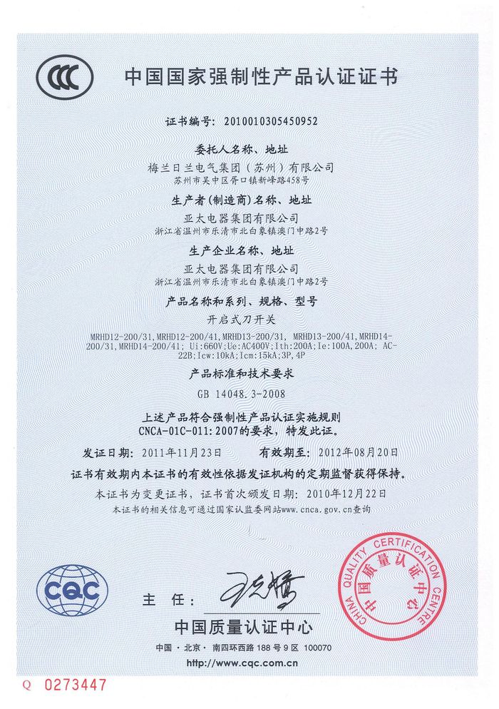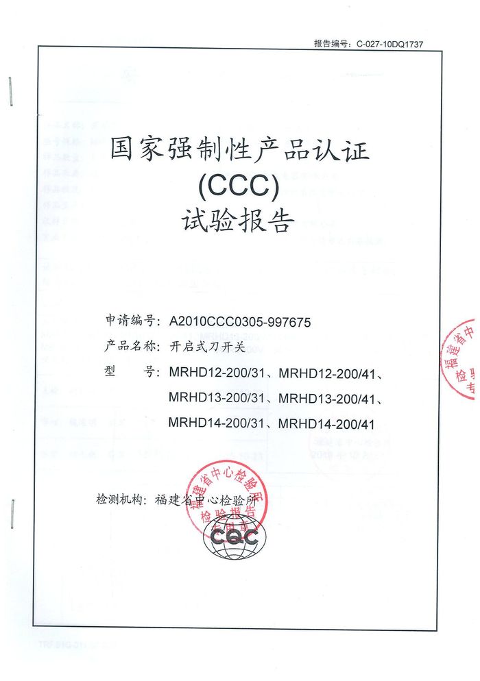 MRHD12-開啟式刀開關資質(zhì)證書