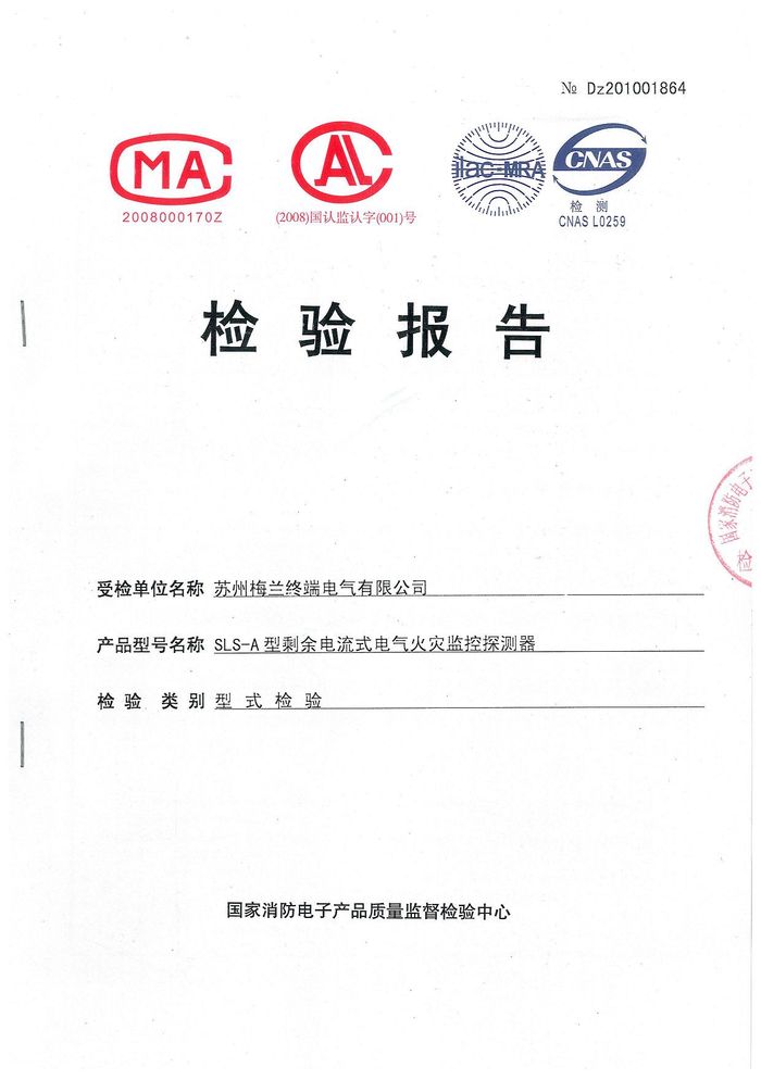 SLS-A型電氣火災(zāi)監(jiān)控資質(zhì)證書