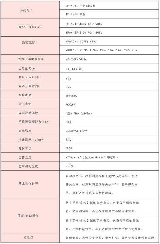 MRB65S-100AP電能表外置斷路器具有短路過(guò)載保護(hù),通過(guò)對(duì)電表控制信號(hào)的檢測(cè)進(jìn)行 自動(dòng)控制接通或斷開(kāi)負(fù)載,實(shí)現(xiàn)欠費(fèi)分閘,付費(fèi)合閘的自動(dòng)控制。符臺(tái)國(guó)家電網(wǎng)《電能表 外置斷路器技術(shù)規(guī)范》以及GB10963.1家用及類似場(chǎng)所用過(guò)電流保護(hù)斷路器的標(biāo)準(zhǔn)要求。
