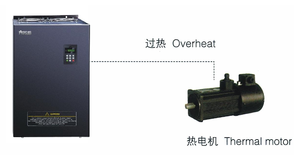 選用輸入輸出擴(kuò)展卡,模擬量輸入A13可接受電機(jī)溫度傳感器輸入(PTlOO,PTlOOO)。當(dāng)電機(jī)溫度越過(guò)預(yù)警值時(shí),變頻器輸出脈沖信號(hào)提示過(guò)熱,當(dāng)電機(jī)溫度超過(guò)過(guò)熱保護(hù)值時(shí),變頻器故障輸出給電機(jī)妥善的保護(hù)。