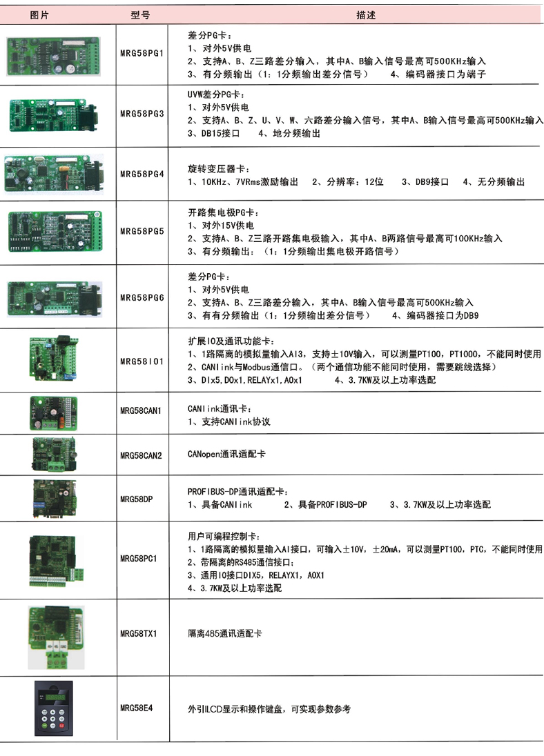 MRG580高性能矢量變頻器是基于MRG280研發(fā)的升級(jí)型變頻器,更具有針對(duì)性,MRG580在MRG280的基礎(chǔ)上除軟件升級(jí)外還添加了多種PG卡,端子功能擴(kuò)展卡,以及通訊卡等選配件。不同的選配件使MRG580有應(yīng)用領(lǐng)域更加廣泛。在行業(yè)應(yīng)用領(lǐng)域中更加專(zhuān)業(yè)。(MRG580配上專(zhuān)用選配件可適用于:紡織、造紙、拉絲機(jī)、機(jī)床、包裝、食品、空壓機(jī)、化工、礦山、鋼鐵、風(fēng)機(jī)、水泵及各種自動(dòng)化生產(chǎn)設(shè)備的驅(qū)動(dòng))。