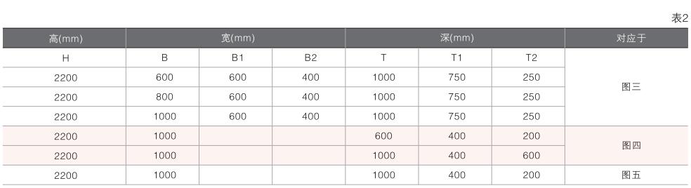 柜體外形尺寸見表1。